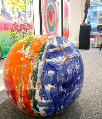 Nes Lerpa, “Sphere” (2023), Malet keramik skulptur, 55 cm.
